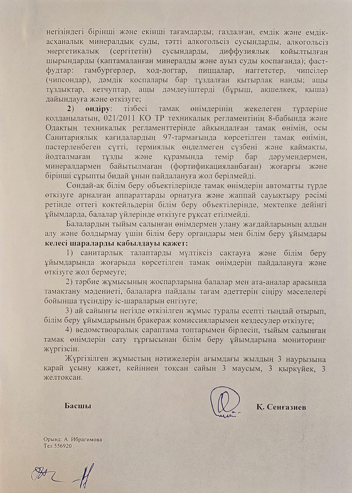 Білім беру мекемелерінде тамақты ұйымдастыру туралы бұйрық 2024-2025 оқу жылы